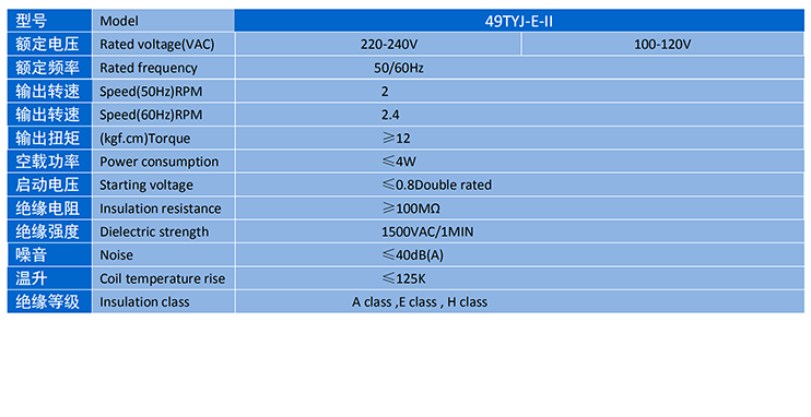 電機(jī)主要性能表 SPECIFICATION
